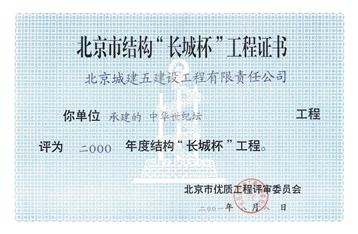 中华世纪坛长城杯证书